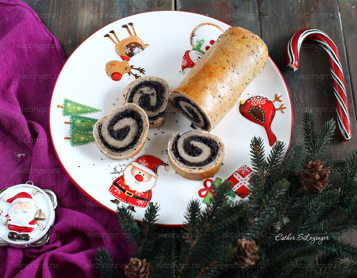Тесто раскатать в прямоугольный пласт, выложить маковую начинку, свернуть в рулет.