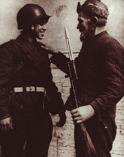 Эту историю мне рассказал мой прадед, который прошел войну с первых её дней. Он повествовал об одном человеке, которому обязан жизнью и считает его настоящим героем, не смотря на то, что сам пережил эту войну! После долгого сражения, немецкие войска загнали нас в небольшой посёлок. Я был ранен от взрыва немецкой мины, но меня кто-то успел оттащить под крыльцо старой церквушки, отстреливаясь от немцев. - Будешь сидеть тихо - выживешь. - Послышался чей-то незнакомый голос в тот момент, когда я начал терять сознание. Провалялся я наверно несколько часов под этим крыльцом, и всё время мне снился один и тот же сон: Казалось, будто наши войска побеждают, однако солдаты куда-то испарялись после каждого выстрела немцев. В моей голове такая каша была, что я не понимал даже смысл своего сна. Очнулся я в каком-то сарайчике. Рядом стоял какой-то странный трактор, обвешанный броней. Ради интереса я поднялся на ноги, но тут же чуть не упал! Раны ещё не зажили.. Голова моя была перебинтована, нога