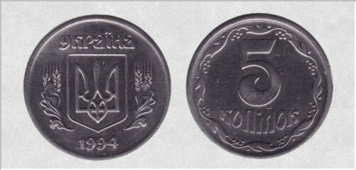 5 копеек 1994 г. (Украина) Цена по каталогам: 2500-3500 грн. Описание: 5 копеек 1994 года - редкая и дорогая монеты Украины. Многие нумизматы готовы дорого купить эту монету в свою коллекцию. Реверс содержит информацию о номинале "5 копійок", аверс - слово "Україна", малый герб, дату "1994". Тираж: по некоторым данным, существует всего около 300 экземпляров монеты, выпускались они Луганским станкостроительным заводом. Особенности: гроздь №2 имеет форму тупоугольного треугольника. Слово "копійок" написано толстым шрифтом, черточка над "Й" приближена к букве, в грозди №5 черенок подходит ко второй слева ягоде. Наибольшую ценность представляют 5 копеек 1994 г., выполненные в "не родном" металле: серебро, алюминий, медь, латунь и др. Цена таких монет в среднем составляет 7500 грн. Нумизматов интересуют монеты с гладким гуртом или с мелкой насечкой. Металл: 5 копеек 1994 г. могут быть отчеканены из магнитной стали, алюминия, немагнитной стали, латуни, меди и серебра. Если Вы нашл