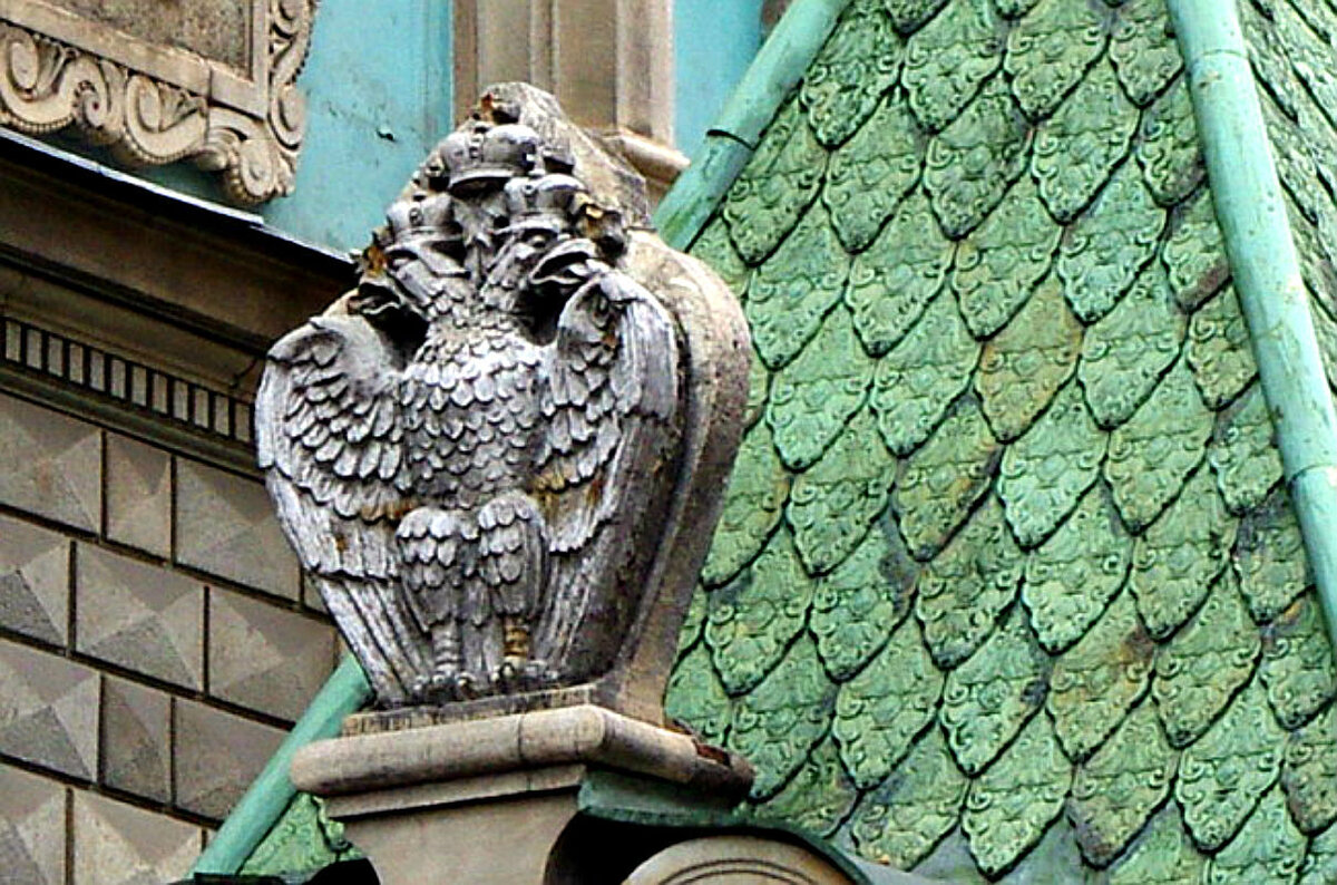 Переводим взгляд на ту сторону улицы и... ах! Цвета морской волны, сказочной красоты чешуйчатый замок с фигурными окнами, совершенно неуместный в серой реальности. Как если бы русалка во всей своей красе вдруг из канализационного люка вылезла. Что ж это за терем такой?