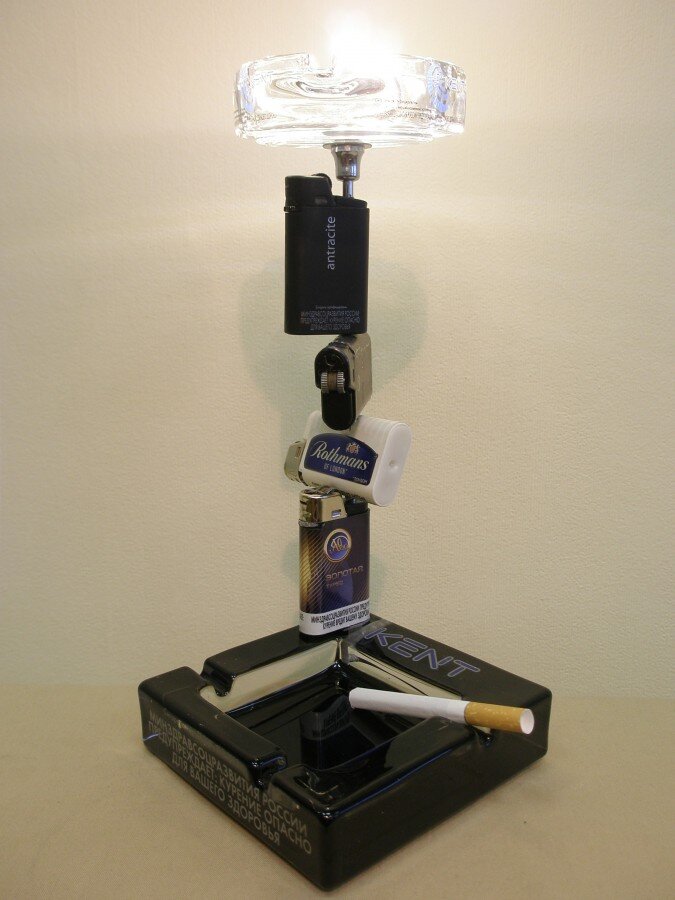 - Настольная лампа бывшего курильщика.Сделана из уже не нужных пепельниц и зажигалок