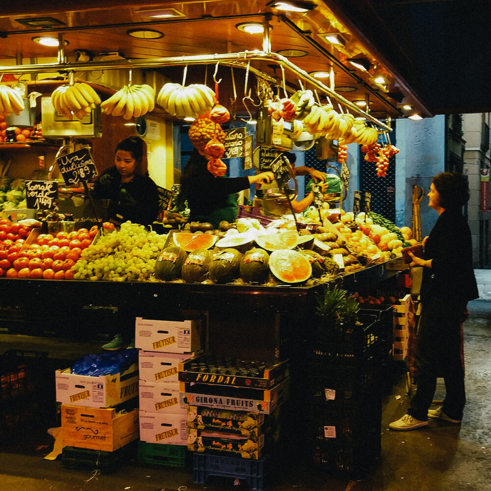 Сегодня окунемся в царство еды на самом знаменитом рынке Барселоны. Адрес: La Rambla, 91, 08001 Barcelona, Испания. Время работы с 8.00 до 20.00 Вход на рынок находится с улицы La Rambla. Бокерия это, скорее, место для туристов, чем для местных жителей. Поскольку даже в близлежащих магазинах цены ниже. При этом большинство хозяев рыночных мест являются торговцами уже в нескольких поколениях. Каждый из них старается привлечь покупателя не только самим ассортиментом товаров, но и тем как он смотрится на прилавке. В ход идут самые разнообразные приемы: украшают травой, ленточками, фигурками и муляжами. Далее нас ждет много фотографий еды. Смотреть лучше будучи сытым. Рыба, какая угодно, свежий улов привозят каждый день. Большой выбор морепродуктов и всяческих морских гадов. Многие из них еще живые, так что будьте осторожны когда подносите палец к клешням. Можно попросить приготовить блюдо из любых продуктов, имеющихся на рынке. Тут же сесть и пообедать с бокалом вкусного вина. Некоторые