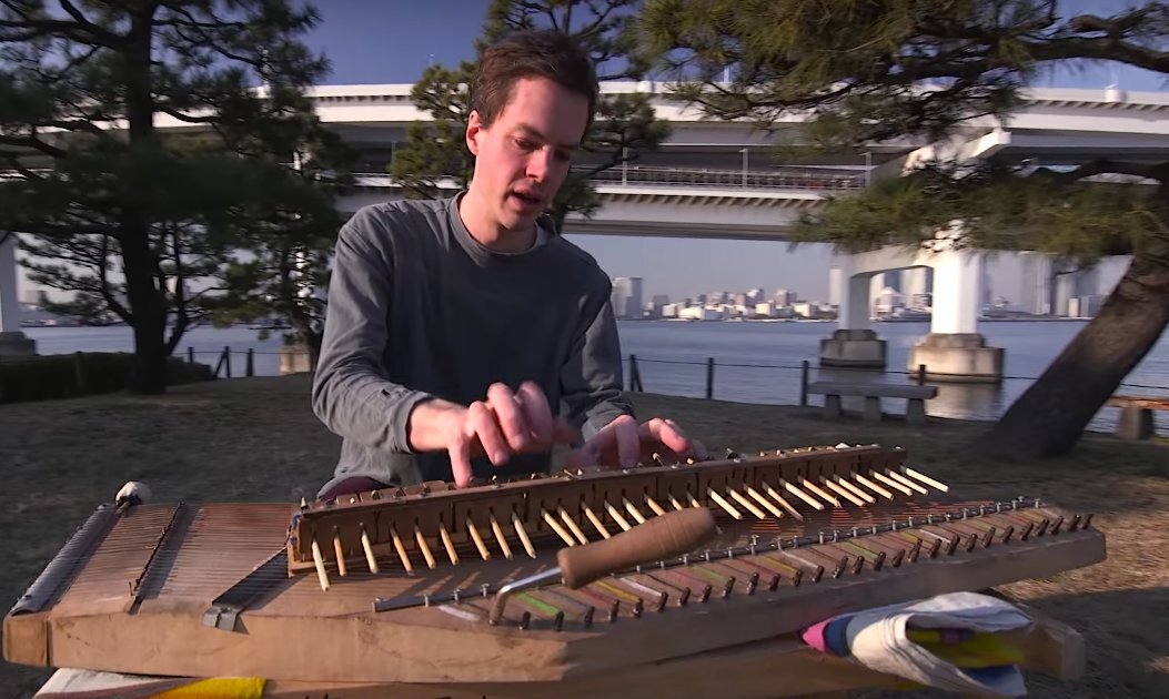 Сами Элу - необычный уличный музыкант, он дает выступления, играя на лично сконструированных самодельных инструментах. Выросший и отучившийся в музыкальной школе города Бостон, сейчас Сами живет и выступает в Японии со своим самым интересным и красиво звучащим инструментом - 29-струнным пианино, в котором роль молоточков для удара по струнам выполняют обычные палочки для еды. Само выступление Сами Элу крайне завораживающее зрелище: помимо игры руками на самодельном пианино, конструкция инструмента позволяет музыканту играть ногами барабанные ритмы. Получаются полноценные музыкальные композиции, от прослушивания которых невозможно оторваться. Понравилась статья? Мне тоже)) Жмите палец вверх и подписывайтесь на здоровье, здесь Вам всегда рады)))