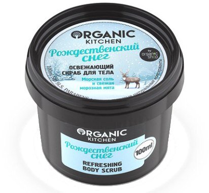 1. Гель-скраб для тела Organic Kitchen освежающий "Рождественский снег" Консистенция у этого скраба состоит из соли и геля. Скрабирующие частички в виде соли мягко, но эффективно скрабируют кожу. Приятный сладковатый мятный аромат леденцов дополняется легким охлаждающим эффектов на коже. Кожа гладкая, мягкая, чистая и обновленная. 2. Масло для тела Organic Kitchen "Ночь перед рождеством" Расслабляющее густое масло для тела имеет сладкий шоколадный аромат с нотками корицы и кардамона. Масло придает коже мягкость и эластичность, увлажняя и питая кожу, благодаря масло какао в составе. Масло имеет приятную легкую консистенция, оно не липкое и не жирное, быстро впитывается. 3. Маска-SOS для лица Organic kitchen "После вечеринки" Маска-SOS моментально приводит лицо в порядок. Она интенсивно увлажняет кожу, выравнивает тог лица, и возвращает коже свежий и здоровый вид. Имеет приятный цитрусовый аромат, который поднимает настроение и очень бродит с утра. Сок грейпфрута в составе придает коже