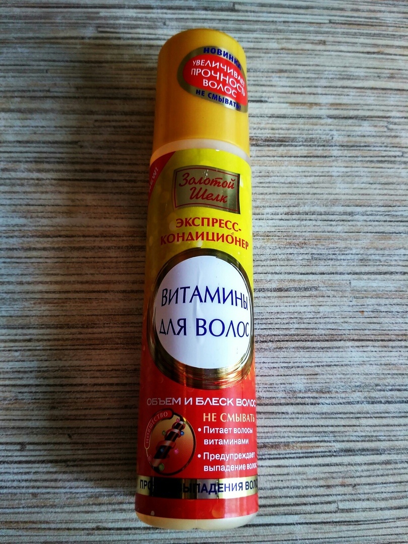Золотой шелк.Экспресс-кондиционер. Объем-200 мл. Приобретен был в "Улыбке Радуги" за 89 рублей по акции. На упаковке указано: "против выпадения" и "увеличивает прочность". Представлено средство в виде спрея. В составе экстракты алоэ, бузины черной и липы, а также протеины пшеницы. Применение: распылить на влажные волосы, распределить до кончиков и уложить волосы как обычно. Смывать не нужно. Текстура у средства не маслянистая, больше как водичка, быстро впитывается. Волосы не жирнит.