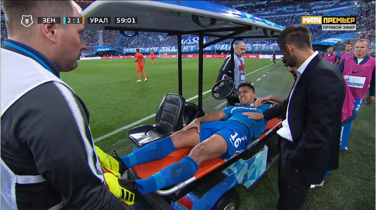 Полузащитник «Зенита» Кристиан Нобоа получил травму во время матча 4-го тура Российской Премьер-Лиги с «Уралом».