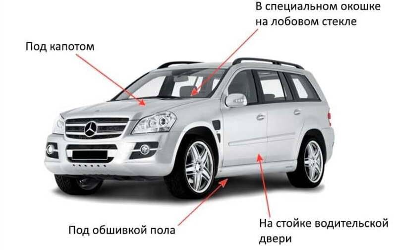 Вне зависимости от марки и модели, каждый изготовитель инсталлирует на кузовную часть машины специальную табличку, имеющую сугубо индивидуальную информацию о каждом техническом средстве. В среде автомобилистов это называется VIN код – идентификатор машины. Располагаться он может в нескольких частях для повышения безопасности и предотвращения подделок. Как правило, таблички расположены в капотной части, дверных проёмах, подкрыльном отсеке.