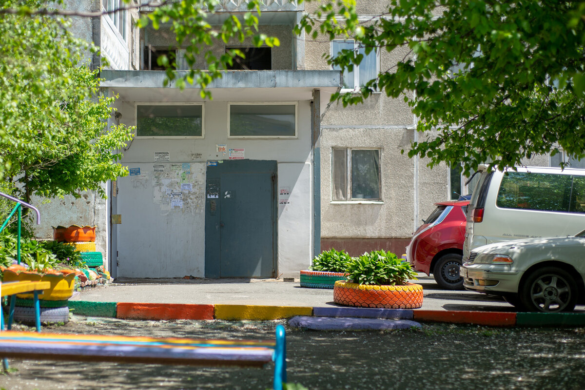 Я хочу менять города в лучшую сторону: делать их дружелюбнее, удобнее и красивее. Я не политик, не строитель и не архитектурный критик. Я дизайнер и визуализатор. Поэтому я придумал «дизайн — подорожник». При помощи фотошопа я меняю суровую реальность на альтернативную. Да, это всего лишь картинки. Но, возможно, эти картинки станут причиной чьих-то размышлений и началом общественного запроса. Начнем Мне написал Евгений Коваль — путешественник, блогер, исследователь городской среды и любитель пошататься по подъездам. Он прислал фотографии своего двора во Владивостоке. Давайте посмотрим, как мог бы выглядеть двор Евгения, во вселенной дизайнера-урбаниста. Уберем все чего не должно быть в нормальном дворе. Цветные покрышки могли бы стать одним из символов нашей страны, в одном ряду с кокошниками и балалайками. Но здравомыслие потихоньку просачивается в головы чиновников. Во Владивостоке запретили использование отработанных покрышек для благоустройства дворов. Парковка автомобилей под ок