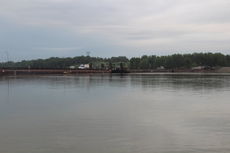 Выше города Бийска судоходство на реке Бия нет и поэтому вдобавок к двум имеющимся автомобильным мостам, горожане позволили себе установить и понтонный мост. Слегка жируют.