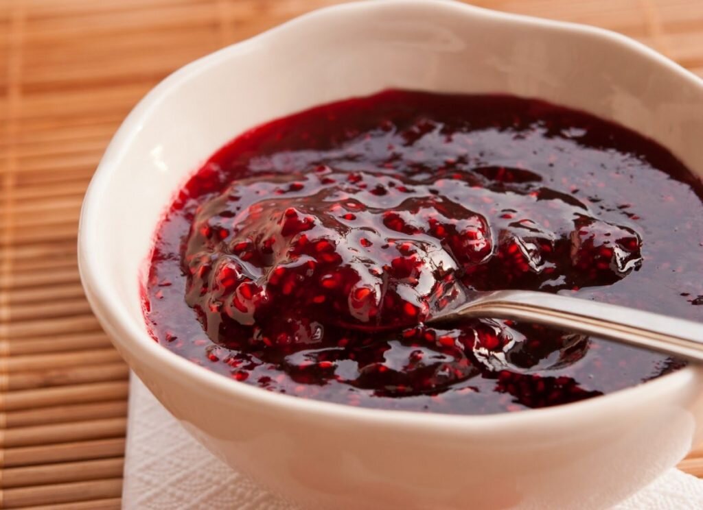 1. Малиновое варенье на скорую руку за 5 минут Ингредиенты: 1 кг малины, 1 кг сахара. Как готовить: Засыпьте малину сахаром в большой кастрюле. Через 3-5 часов доведите массу (ягоды и сок, который они пустили) до кипения и варите 5 минут, снимая пенку. 2. Как приготовить малиновый джем без косточек Ингредиенты: 1,2 кг малины, 800 г сахара, 100 мл воды, 2 г лимонной кислоты. Как готовить: Измельчите ягоды блендером или толкушкой. Добавьте воды, доведите до кипения и варите 3 минуты. Перетрите малину через сито, добавьте сахар и варите еще минут 15-30. Лимонную кислоту разведите с водой, влейте в смесь и еще раз доведите до кипения. 3. Как приготовить малиновое варенье без варки? Так сохранится больше витаминов. Ингредиенты: 1 кг малины, 1 кг сахара. Как готовить: Тут всё просто. Засыпьте малину сахаром и измельчите толкушкой. Оставьте на 4–5 часов, пока весь сахар не растворится. Периодически помешивайте. Разложите сырое варенье в контейнеры, банки или даже целлофановые пакеты, и положи