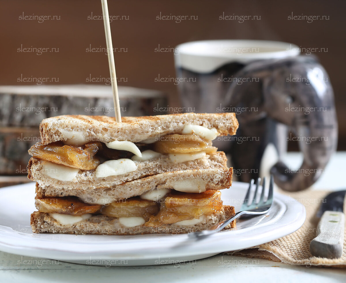 Бананы в кляре - популярный десерт который очень легко приготовить дома. Получается сладко, вкусно и необычно. А если сделать такой полезный сэндвич с сыром моцарелла и бананами - получится отличный сытный завтрак или перекус. Калорийность одного сэндвича около 180 ккал. Ингредиенты: