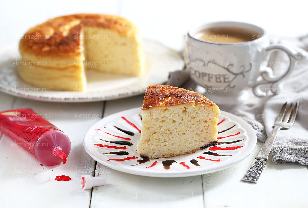 Готовим так же, как и в предыдущей версии: яйца разделить на белки и желтки. Белки взбить с щепоткой соли до крепких пиков. Желтки смешать с молоком, обычным и мягким творогом. Добавить растопленное сливочное масло, лимонный сок и цедру, разрыхлитель, муку, крахмал, стевию по вкусу. Затем аккуратно ввести белки. Перемешать. Выложить получившуюся массу форму, смазанную оливковым маслом (или силиконовую). Форму поместить в ёмкость с горячей водой. Выпекать при 150° в течение часа-полутора часов. Во время готовки духовку не открывать. Когда чизкейк испечется, выключить духовку, приоткрыть дверцу и оставить на 10-15 минут. Затем остудить чизкейк и убрать в холодильник на несколько часов.