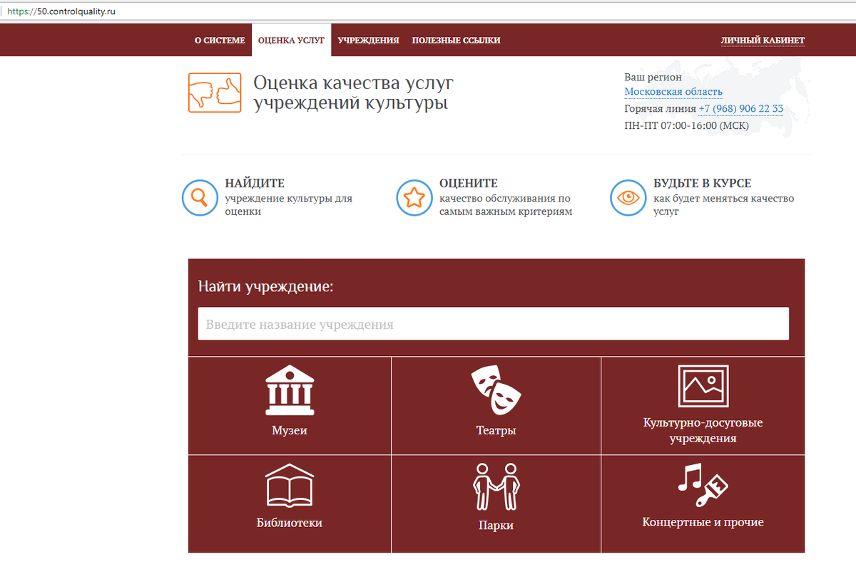 Для этого необходимо зайти на сайт «Оценка качества услуг учреждений культуры» по адресу 50.controlquality.ru, найти нужное учреждение и оценить качество услуг, предоставляемых данным учреждением. Напоминаем, что независимая оценка качества условий оказания услуг учреждениями культуры Московской области проходит до 20 сентября.