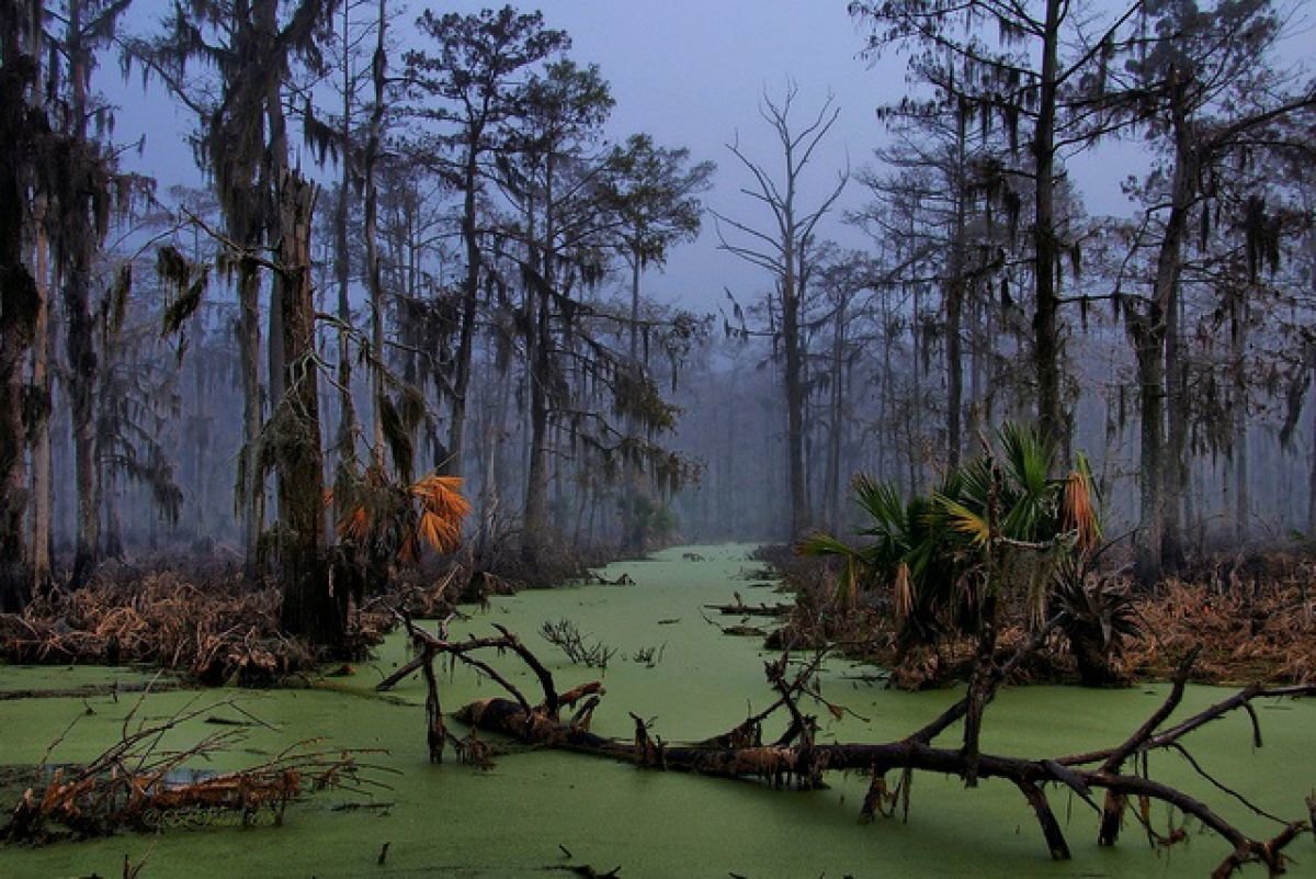 В мире существует множество опасных мест, мы уже говорили и про смертельную дорогу и про остров с варанами. Но сейчас вы стоите перед чем-то абсолютно другим. Не многие места на нашей планете могут похвастаться мистикой и какими-то демоническими силами, которые способны утянуть туристов в трясину. Поприветствуйте болото Манчак. Находится оно в США в штате Луизиана. История места Само болото разрослось совсем недавно, еще в 20 веке на его территории жили и селились люди. До определенного момента. В 20- годах на болоте была поймана женщина Джулия Вайт, ее удерживали там насильно никому не известные люди. К сожалению, она оказалась ведьмой и прокляла то место, которое оказалась ей тюрьмой. В этот же год прокатились 3 урагана, которые полностью уничтожили цивилизацию на болоте. Грунтовые воды стали наполнять болота и спустя несколько лет Манчак стало одним из самых больших болот Америки. Люди тут селиться перестали, а любые попытки обжить и осушить болото по разным причинам останавливал