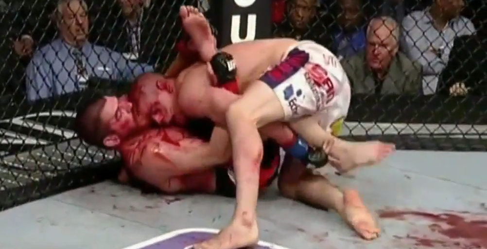 ММА известно миру как жестокое единоборство, и, конечно же, в этом виде спорта не обошлось без крови. В этой статье мы представим Топ-5 самых кровавых боев за период 2012–2017 годов. Но перед этим хотелось бы отметить, что мнения по поводу ранжирования боев могут разделяться, потому как с разных точек зрения зрелищность и кровопролитность поединков может быть разной. Но так или иначе все эти бои достойны внимания. №5 Джим Миллер – Джо Лозон В 2012-ом Миллер и Лозон сошлись в безумной схватке. Оба бойца показали невероятную стойкость. В начале поединка Миллер нанес удар локтем оппоненту, сделав рассечение над правой бровью. Весь бой Лозон истекал кровью, а его белые шорты практически полностью сменили цвет. Перед началом каждого последующего раунда судья узнавал о самочувствии Джо, но тот отвечал, что все хорошо. В конечном счете Миллер одержал верх, набрав больше очков в бою. №4 Антонио Сильва – Кейн Веласкес В мае того же 2012-го состоялся еще один зрелищный и кровопролитный поединок