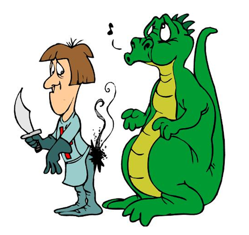 Проверил рыцарь меч в ножнах, перехватил копье в боевое положение и двинулся дракона воевать. Подходит ко входу, тут бы дракону выскочить да сразу бы напороться на копье, но не тут то было, не выходит дракон. Рыцарь постучал копьем по земле, погремел латами, даже кашлянул два раза, не выходит дракон. Тогда рыцарь набрал в грудь побольше воздуха и крикнул: