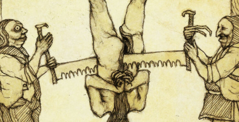От лат. inquīsītiō, в юридическом смысле — «розыски», «расследование», «исследование». Термин был широко распространён в правовой сфере ещё до возникновения средневековых церковных учреждений с таким названием и означал выяснение обстоятельств дела, расследование, обычно путём допросов, часто с применением пыток. Со временем под инквизицией стали понимать духовные суды над антихристианскими ересями. 10 Башмаки с шипом Это железные башмаки с острым шипом под пяткой. Шип можно было выкручивать при помощи винта. С выкрученным шипом жертве пыток приходилось стоять на мысках ноги, пока были силы. Встаньте на цыпочки и проверьте — сколько вы протянете. 9 Вилка еретика Четыре шипа — два, впивающихся в подбородок, два — в грудину, не давали жертве совершать никаких движений головой, в том числе и опустить голову ниже. 8 Испанский сапог Это такое крепление на ноге с металлической пластинкой, которая с каждым вопросом и последующим отказом отвечать на него, как этого требовалось, затяги