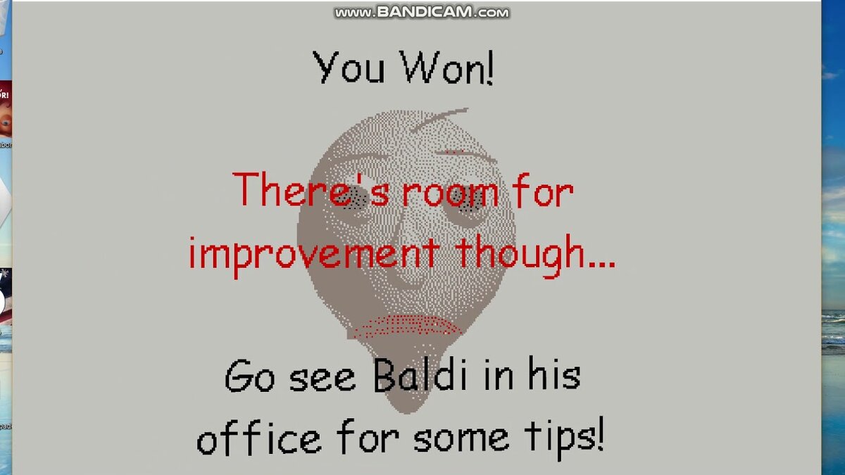 эта игра была создана для metagame jam И кстати в версии 1.3.1 добавили секретную концовку которую можно получить "честным" способом Нам потребуется:знать где установлена игра,знать английский,быть молодцом и иметь руки из плеч Заходим в папку игры находим тал BALDI_data открываем эту папку и переименовываем файл level5 в level0,а level0 переименовываем в level5 заходим в игру и видим там такую заставку перевожу: Ты победил! Здесь есть одна секретная комната войди в кабинет балди за советом! Поворачиваемся и видим дверь там будет растянутый балди,доска из заставки и чья то фигурка без кожи которая нам будет говорить странный текст с ЖУУУУУУУткими помехами.И кстати после окончания разговора игра вылетит.Ниже будет текст
