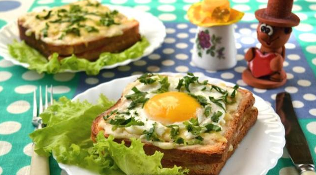 Решила разнообразить меню завтраков! После обдумывания и сканирования холодильника, я решила приготовить горячие бутерброды с яйцом, сыром и копченой колбасой. По моему такие бутерброды прекрасно подойдут для сытного завтрака. Для приготовления бутербродов мне понадобилось: 4 ломтика вчерашнего хлеба небольшой кусочек копченой колбасы небольшой кусочек твердого сыра 2 маленьких яйца соль и молотый черный перец Шаги моей готовки: Шаг первый. Сначала я подготовила начинку для бутерброда: порезала небольшими брусочками копченую колбасу и натерла на крупной терке сыр. Шаг второй. В 2-х ломтиках хлеба вырезала с помощью бокала кружочки. Шаг третий. Оставшиеся 2 целых ломтика хлеба я положила на противень, а сверху них положила ломтики с вырезанными кружочками. Шаг четвертый. В середину каждого вырезанного кусочка, выложила копченую колбасу, а сверху самого хлеба выложила натертый сыр. Шаг пятый. В серединку каждого хлеба, аккуратно разбила сырое яйцо ,посолила его и поперчила. Шаг шес