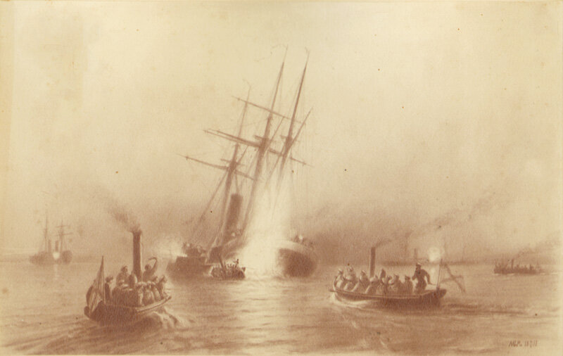 Чтобы помешать туркам выйти на кораблях к местам переправы, русские моряки ставили якорные мины, обстреливали неприятеля из орудий береговых батарей. 29 апреля 1877 года такая батарея накрыла навесным огнем турецкий башенный корвет «Лютфи-Джеиль». Корвет взорвался и вместе со всем экипажем пошел ко дну.