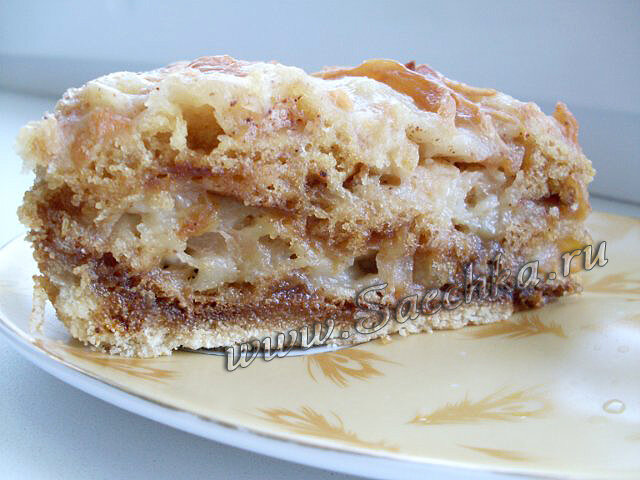 Болгарский насыпной яблочный пирог приготовлен в мультиварке. Ингредиенты: Как приготовить: P.S.: На фотографии на срезе яблочного пирога коричневое - корица (чтобы не подумали, что пригорело).