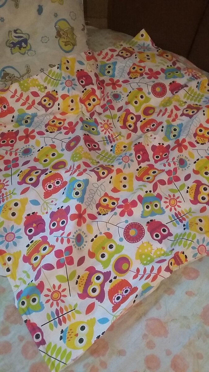 Ткань я взяла хлопок . Для основного полотна с яркими цветными совами ⤵