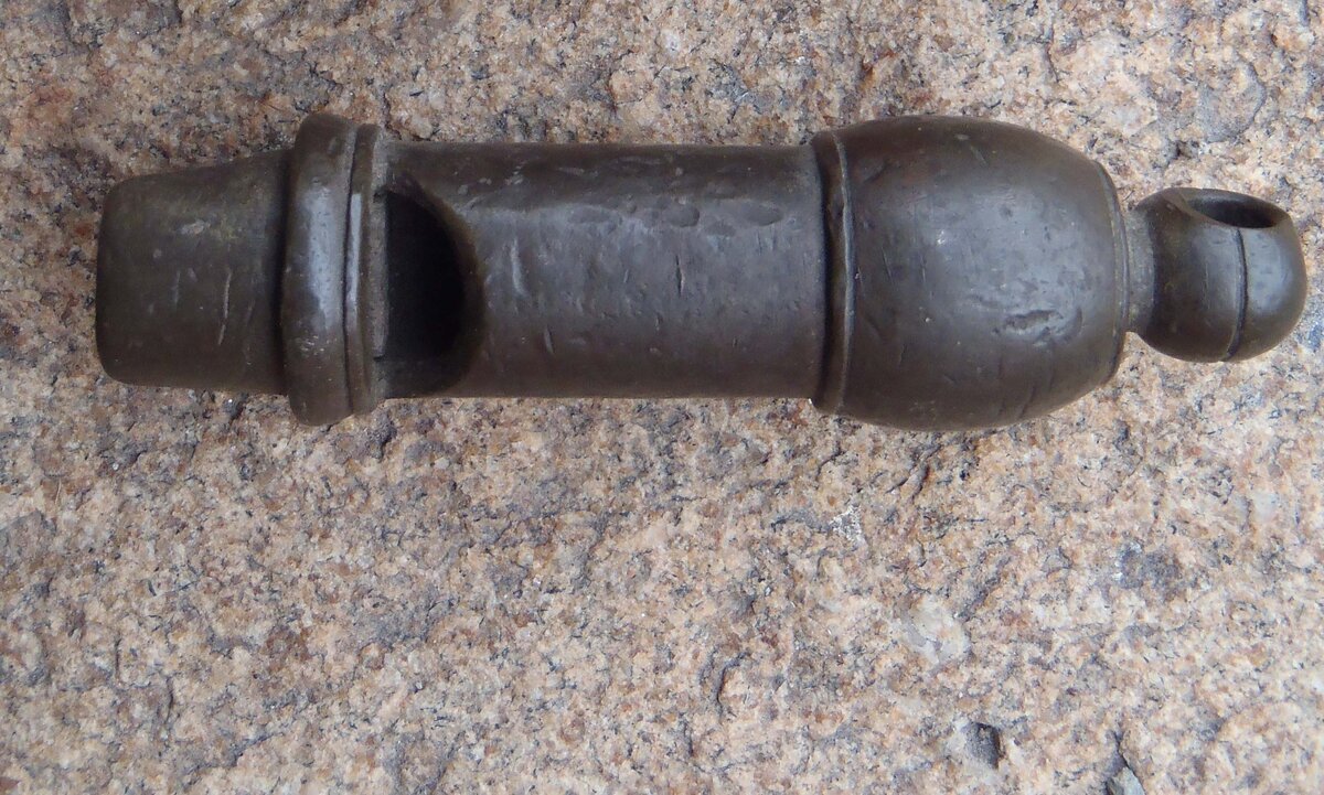 Имеются в моих закромах вот такой красивый свисток в вековой патине: Данный свисток, скорее всего, принадлежал сотруднику органов правопорядка (как говорят в Интернете - полицейскому). Примерное время - конец 19 или начало 20 века. Свисток полностью функционален, идеально издает звук. Звук в виде трели (как и положено свистку). К сожалению клейм на свистке нет, но его подлинность несомненна. Я посмотрел на аукционах цены на подобные свистки времен Империи. Оказывается, они очень даже хорошо стоят. В среднем цена продажи составляет от 1000 до 1500 рублей. При наличии клейм цена может еще возрасти на 30-50 процентов. Скорее всего такие свистки интересны тем, кто увлекается коллекционированием "полицейской" тематики Царской России, либо униформологией (свисток это тоже как бы часть формы).