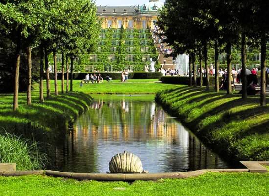 Еще один парк-произведение искусства, который был продуман королем. Как представлял себе король Пруссии Фридрих Великий место отдыха ? Когда-то давно на этих холмах росло множество дубов, но предшественник Фридриха вырубил их подчистую для строительства в городе Потсдам. Фридрих принял решение разбить на опустевших холмах виноградники. В 1745 был было положено начало благоустройству сада,а через 3 года в центре него был уже расположен фонтан, который, к сожалению, не работал. Через пять лет центральная площадь была окружена статуями изображающими древнеримских богов. Проект этого парка и дворца был спланирован еще в 1745 году. В мирное время король жил в этом дворце с апреля до октября. Во многом дворец был отображением благополучия и побед короля Пруссии - каждое важное событие находило свое отражение в новых элементах комплекса. В этом парке находится могила Фридриха - в завещании он говорил, что не хочет ни пышных похорон, ни вскрытия и бальзамирования тела, ни памятника. Главным