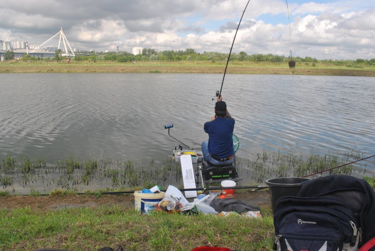 Началась регистрация, мне дали порядковый номер 20, это значит, что на жеребьёвку меня вызовут 20-ым среди 103-х человек. После регистрации мы с девушкой встретили ещё одного друга – того самого Валентина, которому я сильно благодарен. Помогли ему донести вещи, взяли у него живность и стали дожидаться жеребьёвки. После его наступления, дождавшись своей очереди, я выхожу и тяну секторы на 2 тура. На первый тур выпал номер 102, а на второй тур – 40. От шатра жеребьёвки до своего первого сектора было порядка 300-400 метров. Взяли вещи, снаряжение и отправились к месту. Как оказалось, рядом со мной по левую руку выпал жребий у Николая Маткова – нашего одноклубника. Нам же веселее проводить тур рядом. Итак, ожидаем сигнала на вход в зону. После сигнала я сразу приступаю к обустраиванию своего рабочего места, начинаю готовить прикормку и удилища. Полтора часа, которые давались на подготовку к старту первого тура, мне хватило сполна.