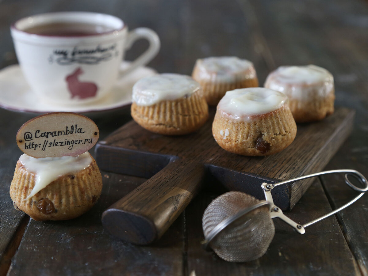 Готовые кексы остудить, проколоть шпажками и смазать сиропом.