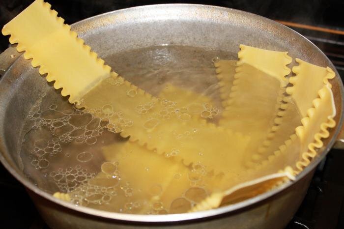 Хочу поделиться еще один рецептом из нашего меню. И готовить мы будем лазанью с мясным фаршем. Лазанья, это большая плоская макаронина. Шутка конечно, но в каждой шутке есть доля правды. Лазанья это макаронное изделие в форме прямоугольника, ну или квадрата. Эта паста пришла к нам из Италии, и в России сейчас очень ценится. Обычно при готовке, лазанью выкладывают слоями, посыпая каждый слой сыром. Начнем подготавливать ингредиенты, нам потребуется: Паста Лазанья - 4 листа Фарш (говяжье-свиной) - 200 гр Помидоры консервированные(кусочками) - 250 гр Сметана - 100 гр Сыр плавленый - 100 гр Соль, перец - по вкусу Базилик, орегано - 1гр Сыр твердый - 100 гр Вино белое сухое - 50 гр Приступаем к готовке: 1. Первым делом нам нужно отварить пасту и остудить ее, при варке, обязательно добавляем растительное масло в кипящую воду, чтобы наша паста не слипалась. Обычно каждый производитель пишет на упаковке сколько варить ее, но мы на работе варим ее 2-3 минуты до состояния "аль-денте". 2. Приг