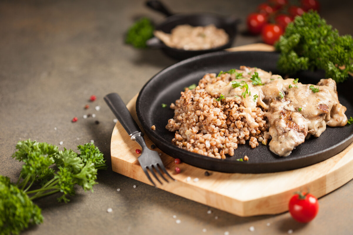 Гречка с печенкой в сливочном соусе от Ильи Лазерсона