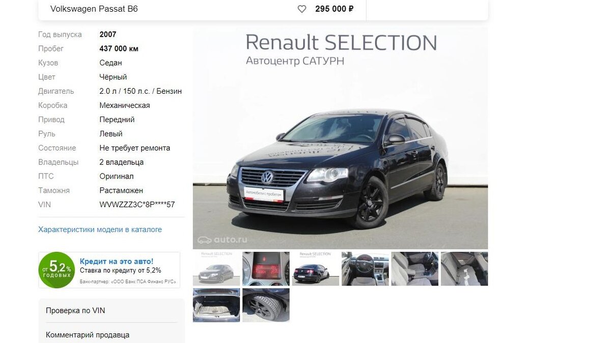 В кармане у клиента 400.000 рублей. А осмотренный Volkswagen Passat B6 стоит 295.000 рублей. То есть купив его, есть свободных 100.000 рублей, которые хотят вложить в машину. И если этих средств будет достаточно, чтобы привести её в идеал, то её купят. Однако на этом Volkswagen Passat B6 пробег на щитке - почти 437.000 км.