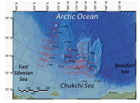 Как сообщает компания SI Imaging Services (Респудлика Корея), исследования, проводившиеся в августе 2015 года, позволили создать модель покрытия морскими льдами Чукотского моря по радарным данным с южнокорейского многоцелевого спутника KOMPSAT-5 на основе технологий машинного обучения. Использовались результаты съемки в режиме в режиме Wide swath. В качестве входных переменных для картирования морского льда использовались 12 текстурных признаков, полученных по интенсивности обратного рассеяния, и полутоновая матрица смежности. Была создана карта морского льда с шагом сетки 125 м, была продемонстрирована отличная производительность в классификации морского льда и открытой воды с общей точностью 99,2% и коэффициентом каппа 98,5%. Концентрация морского льда (SIC), полученная в модели, была сравнима с ледовыми картами. Средние и медианные значения различий между концентрациями SIC, полученными из модели, и ледовых карт, составили -8,85% и -8,38%, соответственно. Такая разница объяснялась