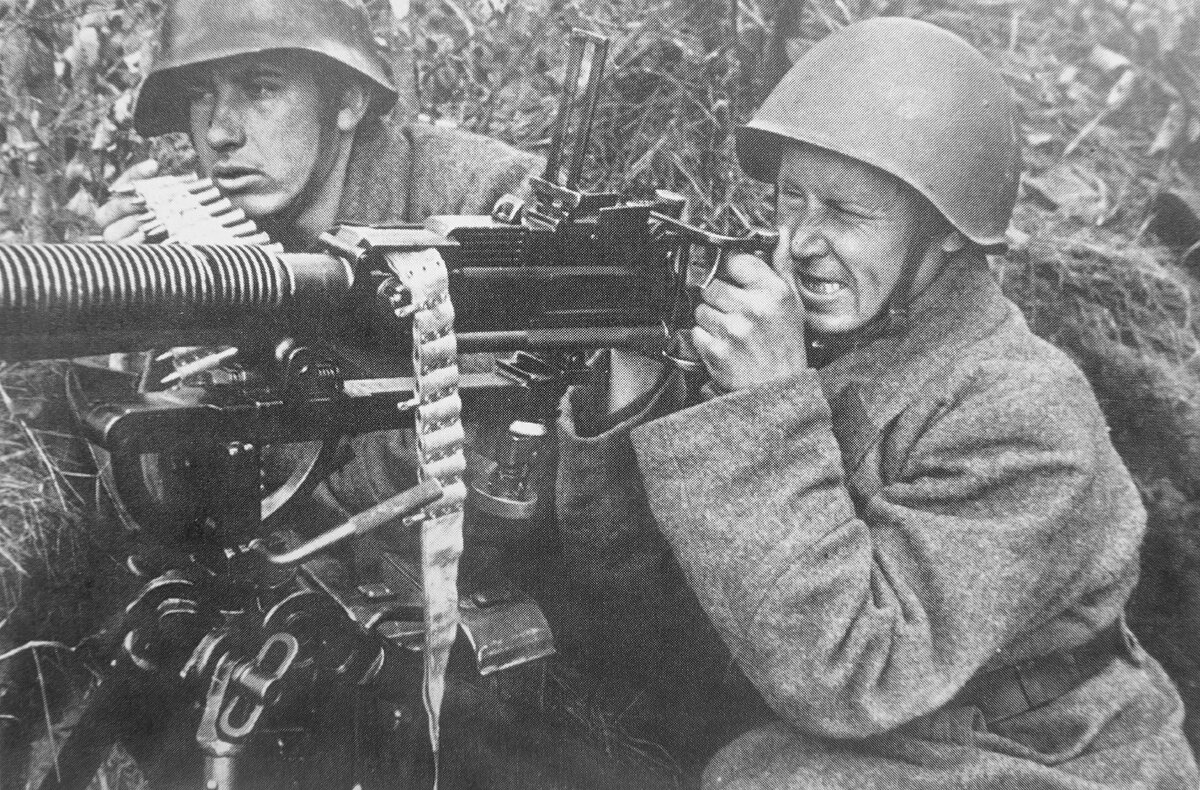 Утром снова развязался бой, немцы открыли сильный огонь по нам из автоматов и пулемётов. Они шли колонной на нас под прикрытием своих миномётов. Мы с помощью танковых пулемётов подавляли их атаки. Немцы залегли на какое-то время, а затем снова шли на нас. Подпустив фрицев ближе, мы перешли в контратаку. С криком "Ура!" первая рота бросилась в рукопашный бой. Немцы, боясь прямого контакта, снова отступили. И первой роты появился связной и доложил, что кончаются патроны для пулемётов, а так же большие потери личного состава. К первой роте мы направили наших бойцов. Фашисты решили атаковать с двух сторон. Перестрелка стала почти у самого нашего лагеря. Я подумал, что бой мы наверное проиграем. Немцы подступали всё ближе и ближе к нам. По телефонной связи мы запросили помощь у своих с правого и левого флангов. Уже седьмой час длился бой. И вдруг, со вражеской территории доносится наше "Ура!". Через какое-то время стрельба прекращается, а затем вражеские миномёты стали обстреливать немцев.