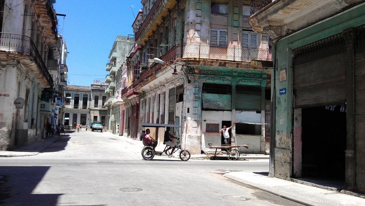 Общественный транспорт на Кубе - та ещё экзотика. В качестве такси велотележка, в качестве автобуса - конная повозка. Велотакси даже в Гаване попадаются. Они тут называются "Бицитакси", или просто "Бици", от испанского названия велосипеда. Лошадей на улицах в Гаване нет, столица всё-таки. А в остальной Кубе лошадиный привод - основа общественного транспорта. Вот город Синфуэгос, народ утром едет на работу на "маршрутках". Остановка общественного транспорта. Народ сходит с повозки. Кстати, на всех повозках какие-то номера, то есть это официально зарегистрированный общественный транспорт. Вот стоянка маршруток в городе Лас-Тунас. Есть и конное такси. Бывает, что лошадиных повозок на улицах больше, чем автотранспорта. Верхом ездят редко. Всадники прямо по городу ездят в Тринидаде, который вообще не вышел еще из 19-го века. Ну а это, надо полагать, трактор. Есть и моторные автобусы. Вот они. Старые американские или советские грузовики, переоборудованные под перевозку пассажиров. Они в осно