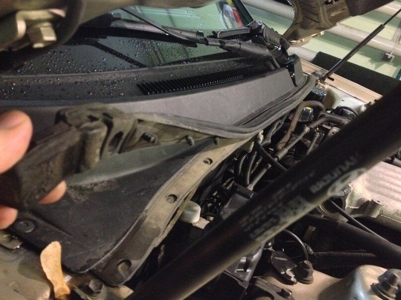 Сразу к делу… Снимаем жабо. Начинаем с уплотнителя. Затем защелки продавливаем отверткой и вынимаем. Снимаем поводки, и извлекаем эту конструкцию. подбираем кнопку, эта хорошо смотрелась. Но была видимо не на 12в. сначала пытался спрятать провода, чтобы не порвало и не намотало. попутно залез в мотор стеклоочистителя. Там все шикарно. Провод вывел там же где выходили провода от мотора стеклоочистителя. в салон тянуть его не стал, если что то и менять тут. Этот подкапотный огрызок.