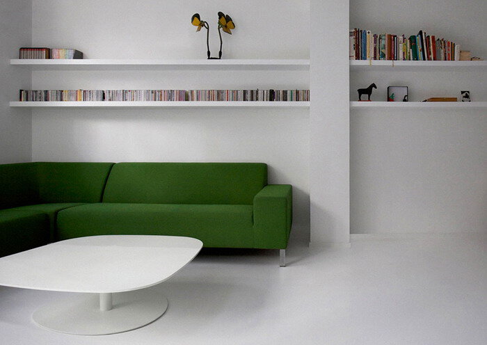 Не знаю, стоит ли эту квартиру называть небольшой, но светлой и просторной - можно! Ещё один пример создания уютного пространства для жизни, а также необычное и компактное размещение деталей в интерьере. Так, прихожая, гардеробный шкаф и часть встроенной кухни размещены по одну сторону квартиры и словно спрятаны за стеной, отделанной светлым деревом. Это же светлое дерево встречаем и в другой зоне квартиры. В деревянную стену встроены камин и скамья, за ней же скрывается система хранения и TV-система. Сочно-зелёный диван задаёт настроение в небольшой гостиной. Стены, пол и потолок белого цвета, а стол, скамья и камин выполнены в антрацитово-сером оттенке – именно такое цветовое решение и продуманная подборка отделочных материалов позволили добиться эффекта визуального расширения небольшого пространства этого интерьера. Оригинал статьи размещен здесь: http://fourwall.ru/dizayn-malenkoy-kvartiryi-v-amsterdame/