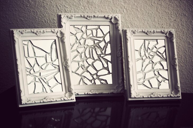 В нашей жизни состоящей из случайностей, всё взаимосвязано. Разбив зеркало, можно сказать что это плохая примета, но если оно вас вдохновляло и приносило удачу, то тогда это хорошая примета, как к этому относиться. Жизнь складывается из череды дней, так почему не сделать цельный объект из маленьких объектов, если есть творческая жилка и вера в свою удачу! Это знают все. Но если оно всё же разбилось, можно попробовать вернуть в дом удачу, изготовить красивую композицию для украшения стены из осколков. Ведь вы из одного былого портала, даёте новую жизнь сразу нескольким. Поэтому, если вы чувствуете в себе желание оставить не только память о данном зеркале, но вдохнуть в него новую жизнь, имеет смысл создать собственный шедевр. Красивые осколки Если разбилось большое зеркало, образовалось несколько крупных осколков, замечательно. К их форме стоит присмотреться. Наверняка среди них есть милые, сюрреалистичные. Нужно изготовить для них раму и повесить их на стену.