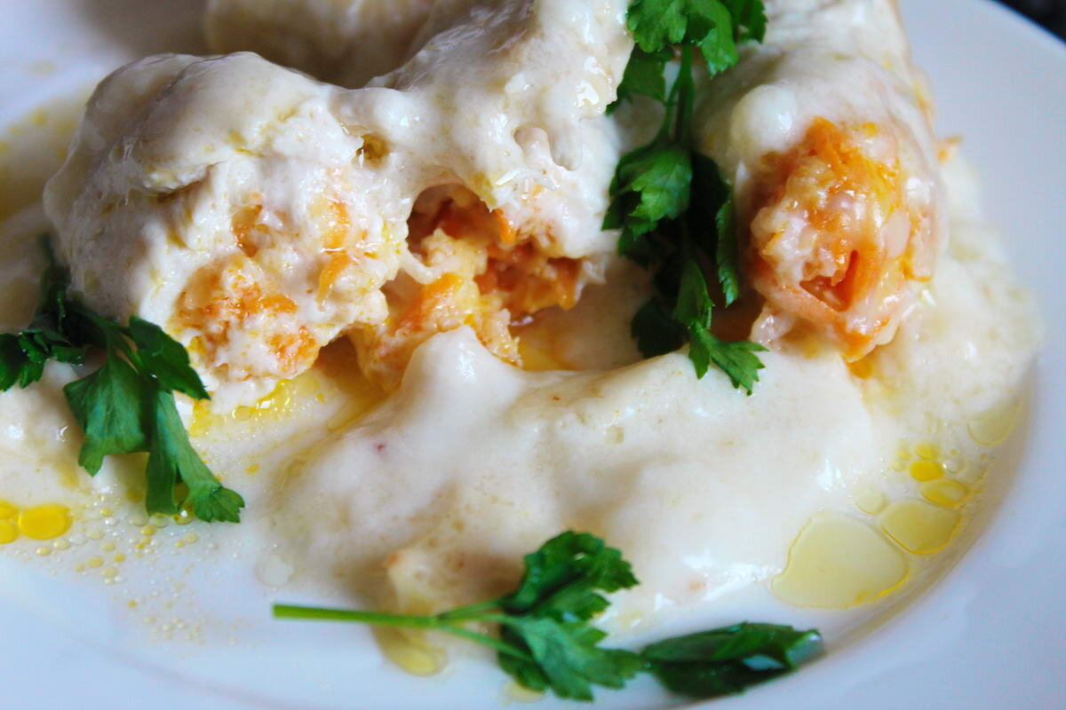 Привет!:) Куриная грудка, несмотря на убеждение многих домашних поваров, может быть очень вкусной и сочной. Я публиковал несколько рецептов из грудки, при которых она становится похожа на мясо, а не на кусок сухой старой тряпки для протирания пыли. Все те рецепты были очень легкими. Этот такой же. Только в чем-то немножко вкуснее предыдущих. Гтовятся такие рулетики за 20 минут. Если вам понравится рецепт, и в конце вы поставите палец вверх, вам будет не сложно, а мне – приятно :) Нам понадобится: Куриная грудка - одна Морковь – половина средней Сыр средней твердости – около 80-100 гр Копчена грудинка (или колбаса, бекон, что угодно с ароматом копчения) – около 80-100 гр Соль – чайная ложка Молоко – один стакан Мука – две столовые ложки с горкой Зубочистки – по числу рулетиков Растительное масло Как готовить: Куриную грудку отделите от кости, разделите на малую (около грудной кости) и большую (остальную) мышцу. Порежьте кусками шириной в три сантиметра. Накройте пакетом, чтобы брызги не