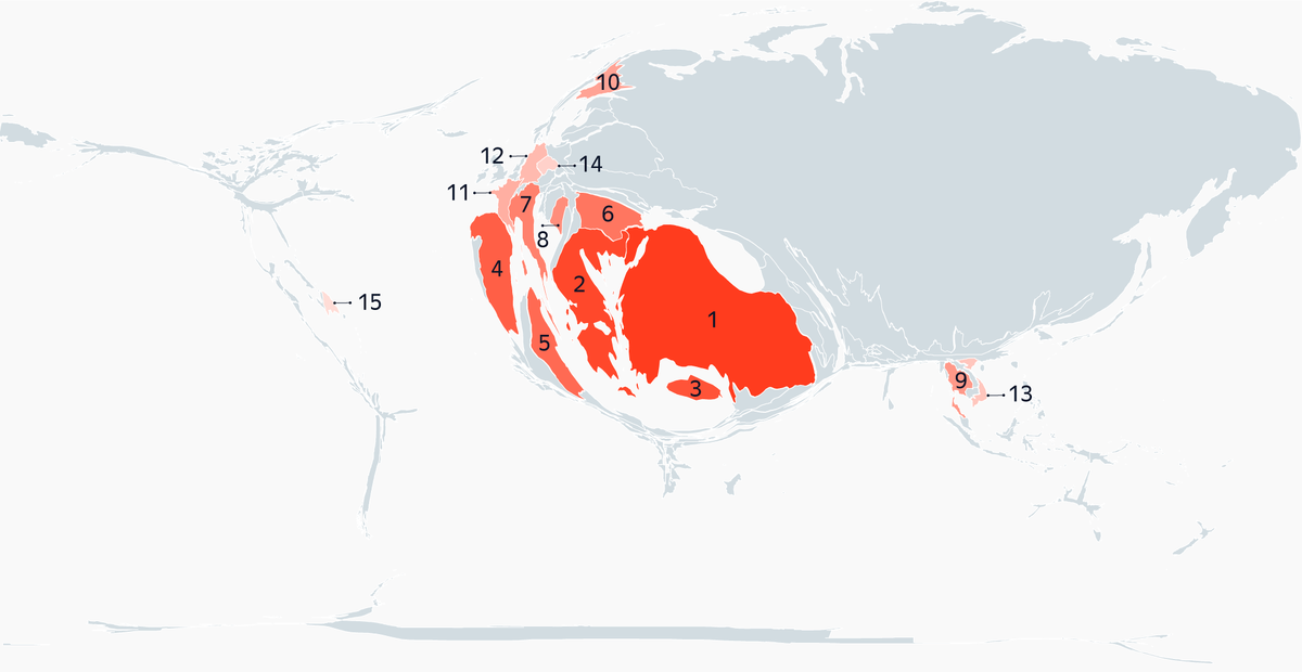 Больше всего российских туристов этим летом приняла Турция. В ней побывало в четыре раза больше пользователей Яндекса, чем в следующей по популярности Греции, и в шесть раз больше, чем на Кипре и в Испании, которые заняли третье и четвёртое место. Самая популярная страна из африканских — Тунис, из восточноазиатских — Таиланд. В топ-15 попал и один представитель Латинской Америки — Доминиканская Республика.