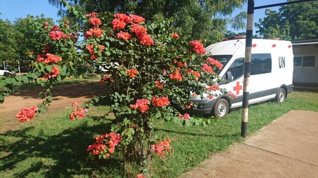Одна из задач, выполняемых российскими пилотами в Южном Судане, да и не только, это дежурство на случай чрезвычайных ситуаций или точнее, проблем со здоровьем у личного состава. Когда экипажу, доктору надо срочно подорваться, выехать в аэропорт и в кратчайший срок прибыть на точку где заболел или умер сотрудник ООН. Поэтому, кроме родного вертолета, наших всегда сопровождает ООНовская "медлетучка", как на фото.
