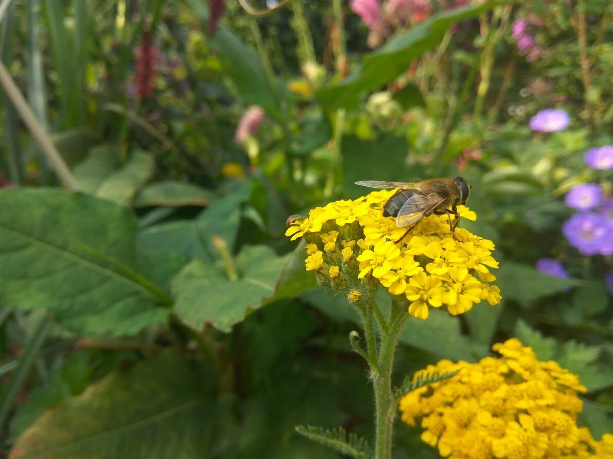Лично я без понятия. Увидела сегодня пчел на цветах в центре Москвы и задалась этим вопросом. Я примерно представляю где живут осы и шмели. Вернее, точно я, конечно, не знаю, но предполагаю, что осы могут свое гнездо обустроить под любой крышей. Шмели примерно также. А пчелы? Наверное, меня не удивили бы пчелы на краю столицы, а вот в центре удивляют. Конечно, я знаю, что пчелы живут не только в ульях. И улетать они вроде могут достаточно далеко. И все равно мне странно. Вот, например, эта пчела с желтого цветка. Собрала она нектар и куда его понесла? А, если они живут далеко, то как узнали, что в центре Москвы вдруг появилось очень много цветов? И зачем Им лететь так далеко, если пока медоносы вполне можно найти и поближе. А может эти пчелы прибыли вместе с многочисленными цветами, которые посадили на время проекта "Цветочный джем", который сейчас идет в Москве? Очень красивый проект, кстати. Я о нем уже писала. Кстати, пока писала, подумала, вроде осень. Пчелы сейчас в принц