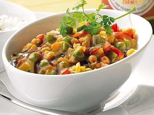 Вряд ли вам доводилось пробовать настолько вкусно приготовленную чечевицу с карри! Даже если вы не являетесь ее любителем, то попробуйте ее приготовить по этому рецепту – результат вам понравится. Вот удивятся ваши домочадцы, получив на обед или ужин такое блюдо – вкусное, ароматное, пикантное! Нам потребуется: Приготовление: 1) Сначала залейте чечевицу водой (примерно семьсот миллилитров), доведите до кипения, добавьте лаврушку. Варите примерно полчаса, после чего слейте с чечевицы всю воду. 2) Репчатый лучок очистите, нашинкуйте. Растопите сливочное масло, выложите в него подготовленный лук и жарьте до золотистости – пары минут будет достаточно. 3) Освободите стручки чили от семян, измельчите. Промойте абрикосы, вытащите из них косточки, порежьте достаточно мелко, добавьте в сковородку к луку, туда же отправьте чили. 4) Влейте в сковородку куриный бульон с уксусом, приправьте небольшим количеством карри, тушите вместе минут пять, время от времени помешивая. 5) Добавьте готовую чече