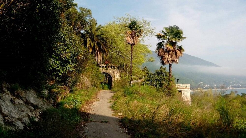 Ощущения просто ошеломляют, к тому же мы совершенно не были к этому готовы: поездка состоялась спонтанно. Только что мы мчались по современнейшей магистрали, пересекали эстакады и путепроводы, мимо нас проносились огромные современные дома с огромными же растяжками рекламы. Мы выходили, едва втиснув автомобиль на парковку, в тридцатиградусную, с раскаленным асфальтом, жару, в плотную людскую толпу, которая несла нас к едальне пообедать. И вдруг – все это исчезло, развеялось, как дым, и мы оказались на пустой трассе – мало машин, мало людей; мало домов, а больших – и подавно. На нас надвинулся простор и природа субтропиков: мы въехали в Абхазию. Даже климат (так нам показалось) поменялся: из дымящейся сковородки мы попали в ласковую теплую прохладу пятичасового вечера. Зной отступил и больше не кусал нас на протяжении всей поездки (со следующего дня похолодало до комфортных 25).