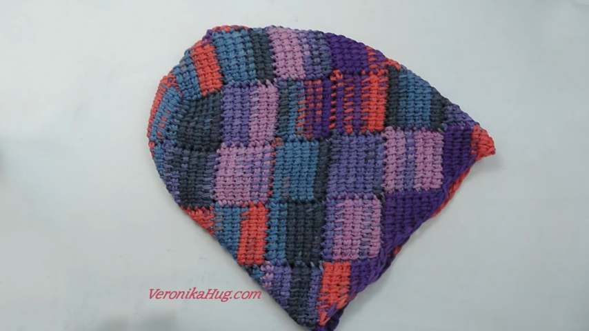 В следующем мастер-классе Вероники шапочка тоже вяжется снизу вверх, но здесь она показывает как связать шапочку в технике энтрелак крючком пряжей разного цвета, от разных клубков.