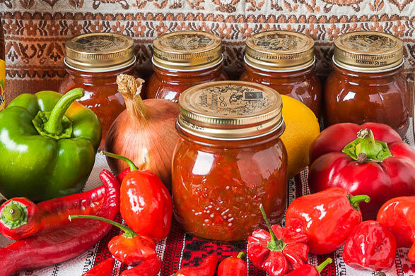 Вкусная приправа способна придать неповторимый вкус любому блюду. И даже спасти не удачно приготовленное кушанье. Приправа будет кстати на праздничном столе и в тесном семейном кругу. Зимой напомнит о лете своим неповторимым ароматом и ярким цветом. Аджика стала интернациональным блюдом. Родиной её является Абхазия, а не Грузия или Армения, как многие думают. Рецептов аджики появилось великое множество. У каждой хозяйки свои секреты. Готовят аджику с помидорами, кабачками и яблоками. Одни люди её варят, другие в сыром виде хранят в холодильнике. Не все может быть знают, но традиционный рецепт приправы не предусматривает никаких ингредиентов, кроме жгучего красного перца, болгарского перца, чеснока и душистых кавказских трав. Перец несколько часов выдерживают на воздухе, чтобы он подвялился. Тогда аджика получится густой. Аджика варёная Приготовленную таким способом заготовку можно хранить при комнатной температуре. Многие хозяйки добавляют ещё и уксус, что увеличивает срок хранения. Но