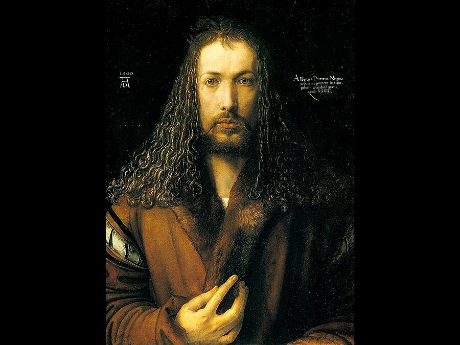 Автопортрет немецкого художника Альбрехта Дюрера, созданный в 1500 году, получил широкую известность как «Автопортрет в костюме из кожи» и «Автопортрет Иисуса Христа». Искусствоведы считают его одним из самых личных, культовых и сложным произведений искусства эпохи Позднего Средневековья. Но почему же художник решил изобразить себя в образе самого Бога? Для конца периода Северной Средневековой живописи изображение Христа в строго симметричной позе и лицом обращенным прямо на зрителя являлось вполне характерным (в отличие от светских портретов). Как правило, Христос был показан с короткой бородой, усами и распущенными коричневыми волосами. И Дюрер изобразил себя именно таким же образом. Включая каштановые волосы. Это особо удивительно с учетом того, что другие его автопортреты, показывают волосы, как красновато-белокурые. Удлиненное лицо, черный фон, спокойный золотистый свет и рука, застывшая в своеобразно благословляющем жесте, лишь добавляют схожести с Христом. С уверенностью можно с
