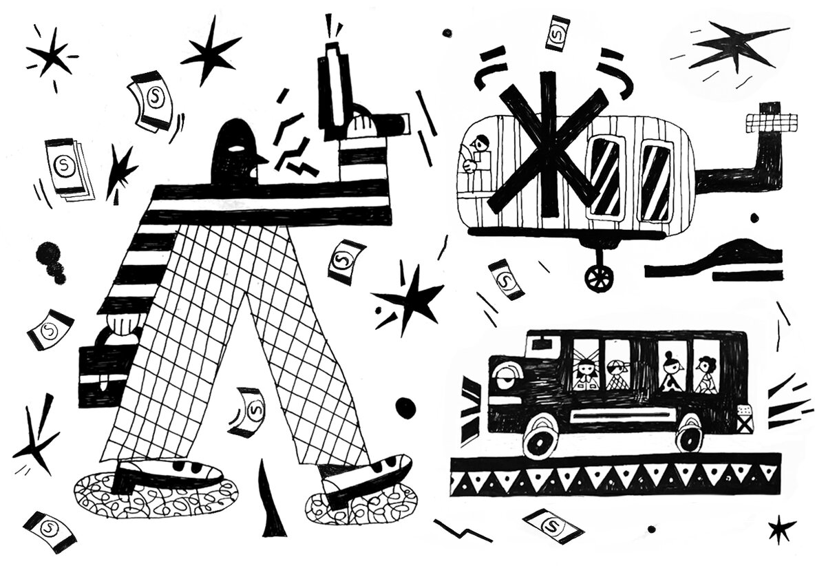 В автобусе лежали новогодние игрушки, которые водитель развозил. Чтобы было больше места, он снял несколько сидений, поэтому в автобус бандиты запихали только 15 человек.