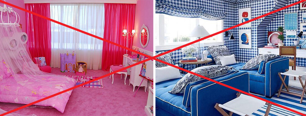 Навязывание цветовой гаммы детям ограничивает их творческие способности, гибкость ума и скорость мышления. Девочка? Начиная с роддома, «пакуем» во все розовое, дарим розовые игрушки, красим стены в розовый цвет. Мальчик? О, конечно, все обязательно будет голубым или синим! Захотел розовый мячик или рубашку??» «Ни в коем случае, во дворе будут смеяться, «тыжемальчик». Девочка предпочла синий – «это мальчиковый цвет!». Загоняя ребенка в узкие рамки «общепринятых» мещанских установок, легко формируем у него косность мышления. Чтобы цветовая гамма в небольшой детской комнате принесла ребенку пользу, стоит учесть советы детских психологов. Ведь цветом можно корректировать настроение, самочувствие и даже характер ребенка. Конечно, при выборе цветовой палитры для детской нужно прислушиваться к мнению ребенка. А учитывая, что любимые цвета детей говорят о темпераменте и отношении к жизни, можно добавить в интерьер те цвета, которые положительно повлияют на поведение хозяина комнаты. Вторая ст